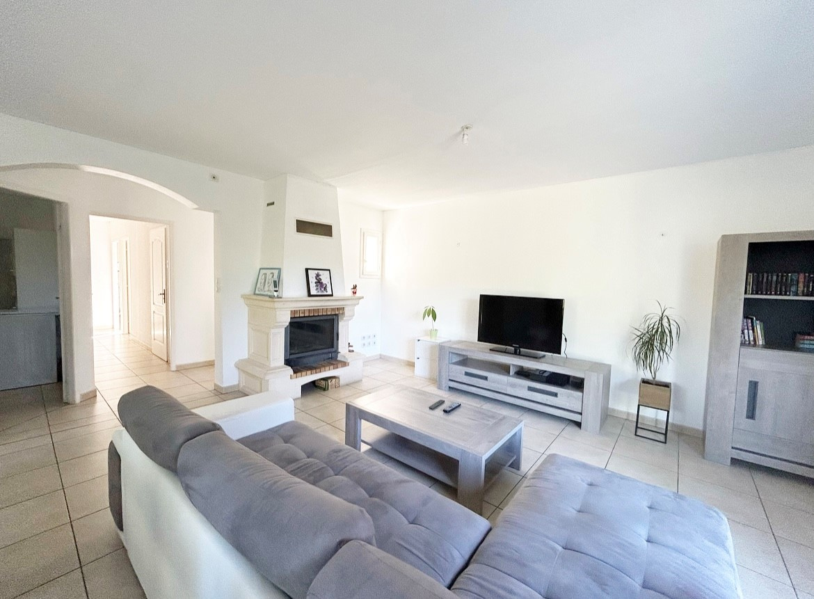 Votre agence ACCORIMM vous propose cette superbe maison de 109 m² de plain pied, composée d’une entrée, d’un spacieux séjour avec cheminée et accès à la terrasse, d’une cuisine fermée, meublée et équipée d’une hotte et d’une plaque de cuisson.