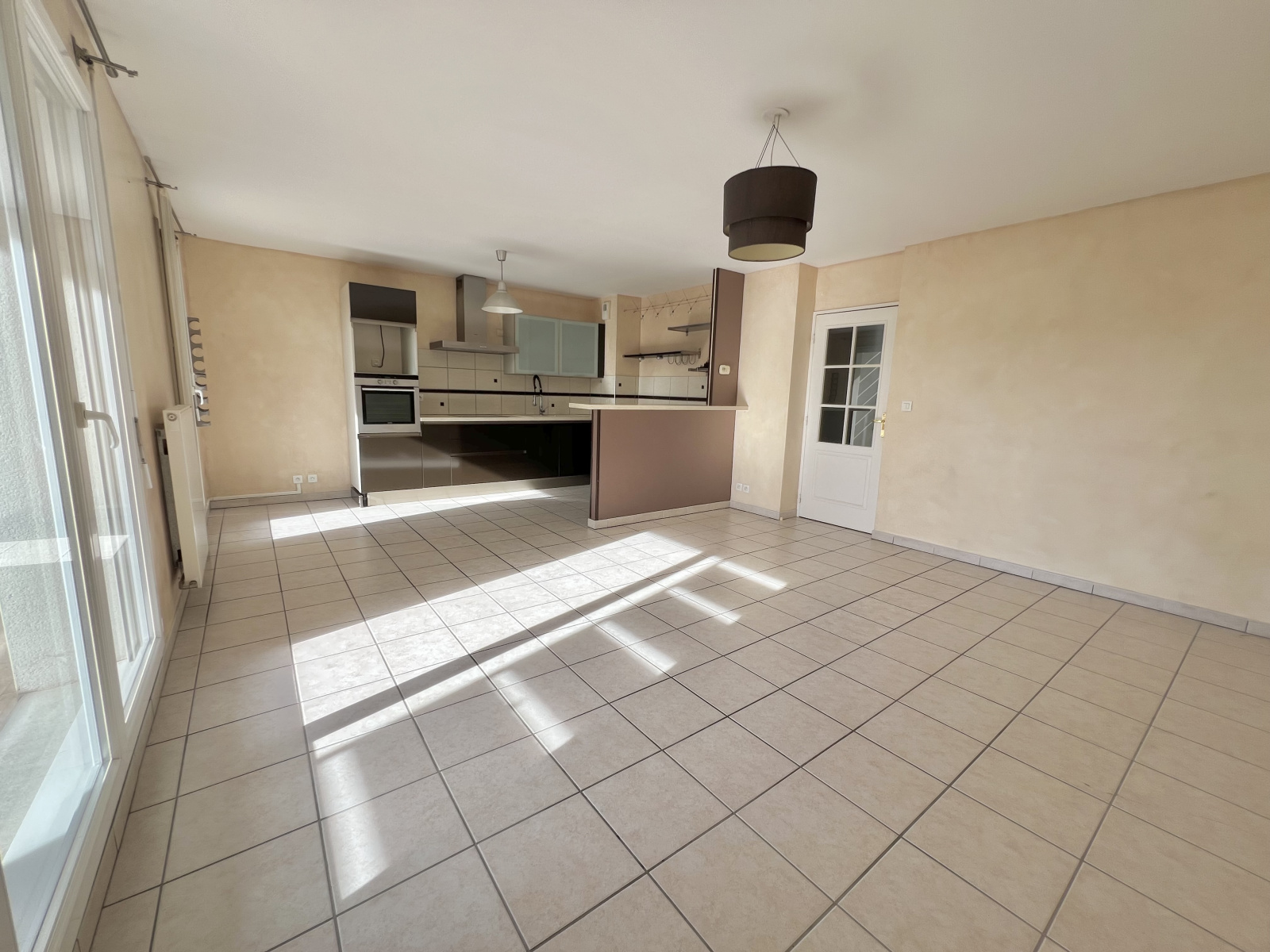 Il est composé d'une magnifique et très grande pièce de vie, d'une très jolie cuisine équipée à l'américaine, d'une belle salle de bains, WC indépendant, puis deux grandes et belles chambres avec placards intégrés.