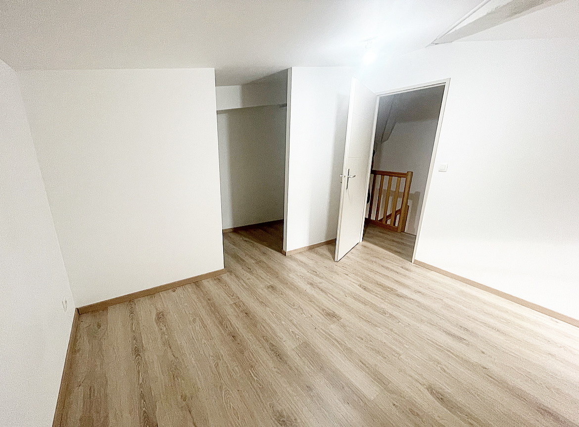 Au premier niveau, vous retrouverez une spacieuse pièce de vie avec cuisine ouverte (39.9m²) ainsi qu'un WC. Au second niveau, 2 chambres de 12,5 m² et 15 m², puis une salle d'eau.
