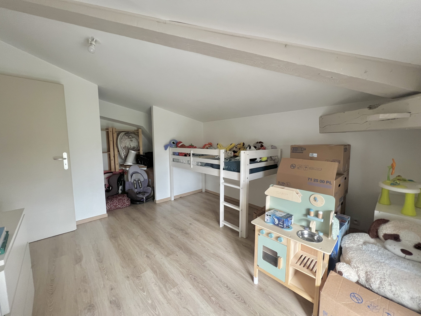 Au premier niveau, vous retrouverez une spacieuse pièce de vie avec cuisine ouverte (38.50m²) ainsi qu'un WC. Au second niveau, 2 chambres, puis une salle d'eau.