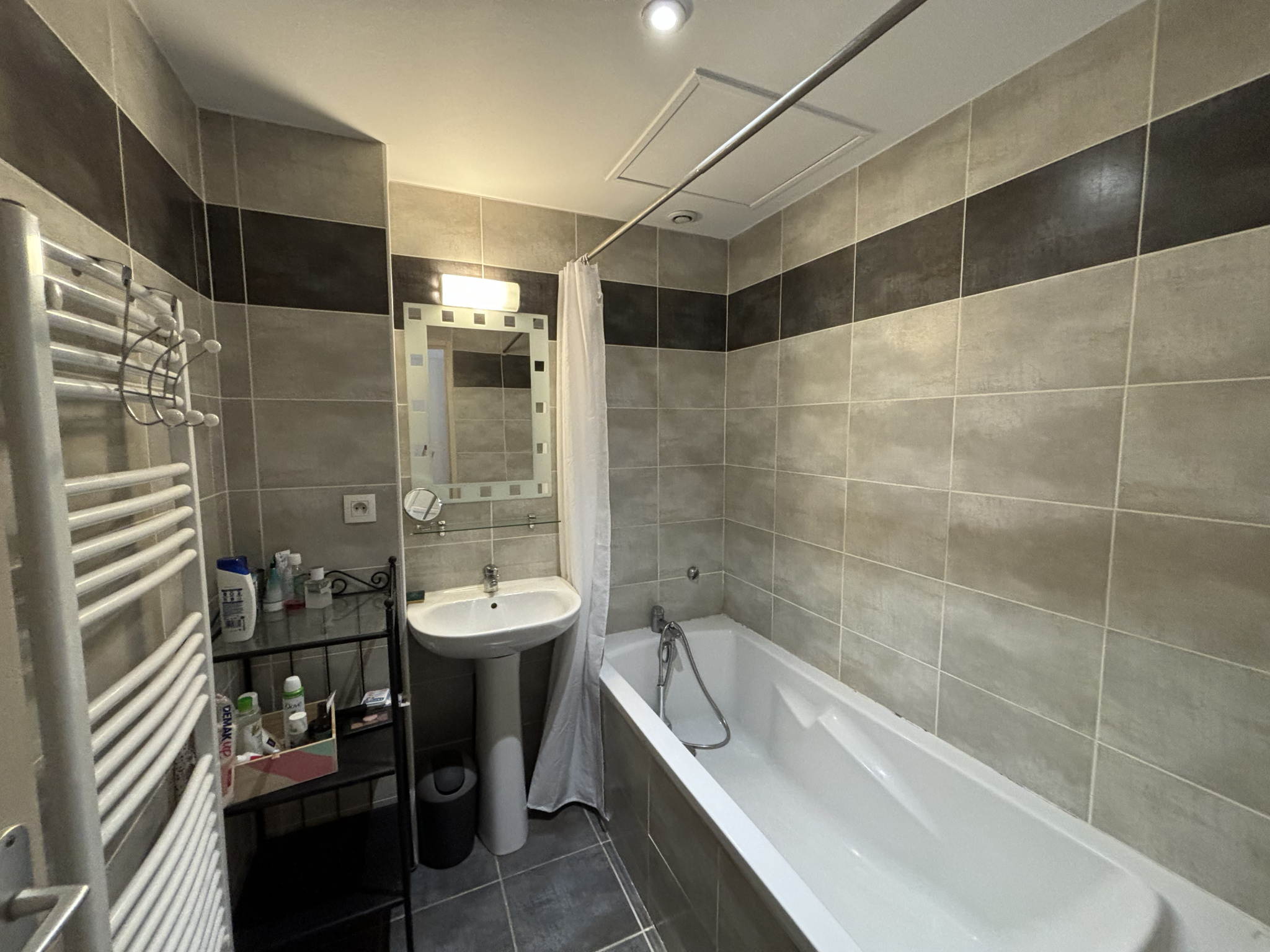 Puis à l'étage, 2 grandes chambres, la salle de bains (baignoire) ainsi qu'un WC séparé.