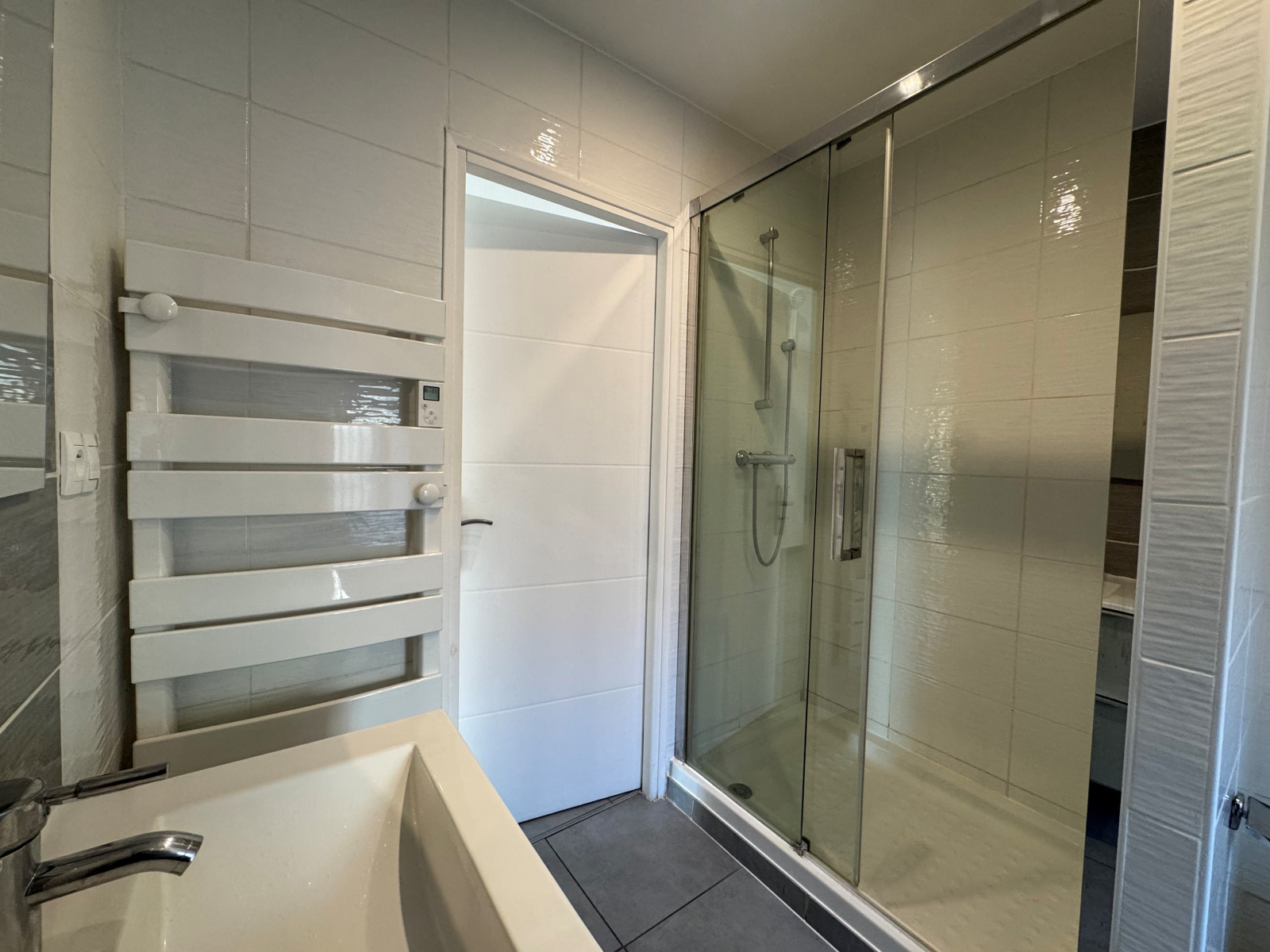 Côté nuit, vous trouverez, une salle d’eau avec un WC et deux chambres très lumineuses.