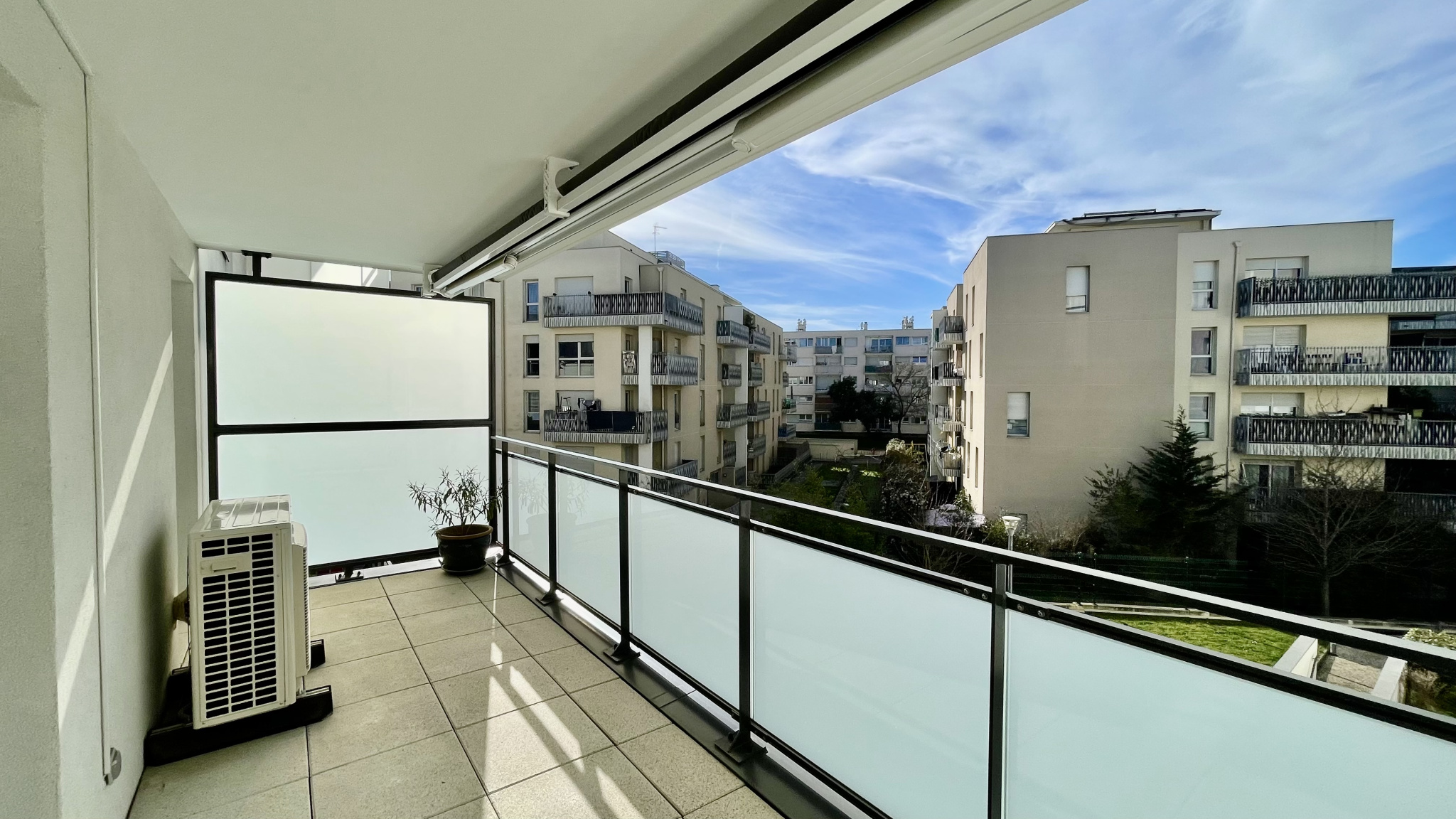 L’appartement se compose d’un séjour lumineux avec cuisine équipée ouverte, créant un espace convivial et fonctionnel. Celui-ci s’ouvre sur un balcon spacieux côté jardin, véritable prolongement de la pièce de vie, idéal pour profiter des beaux jours en toute tranquillité.