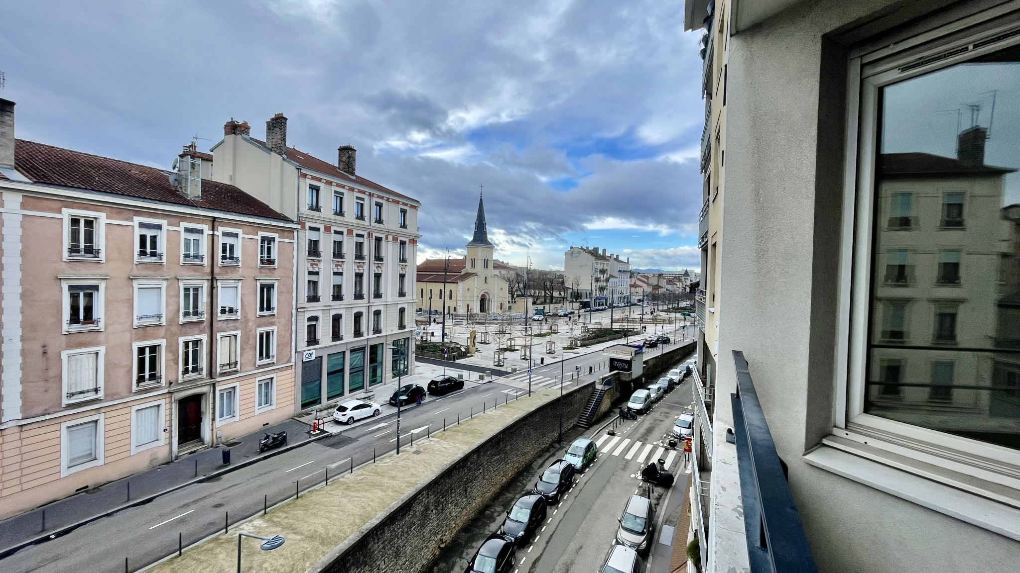 Celui-ci offre une vue dégagée sur la Place Grandclément, récemment entièrement réaménagée et qui accueillera prochainement le tramway T6, renforçant encore l’attractivité et la valeur du secteur.