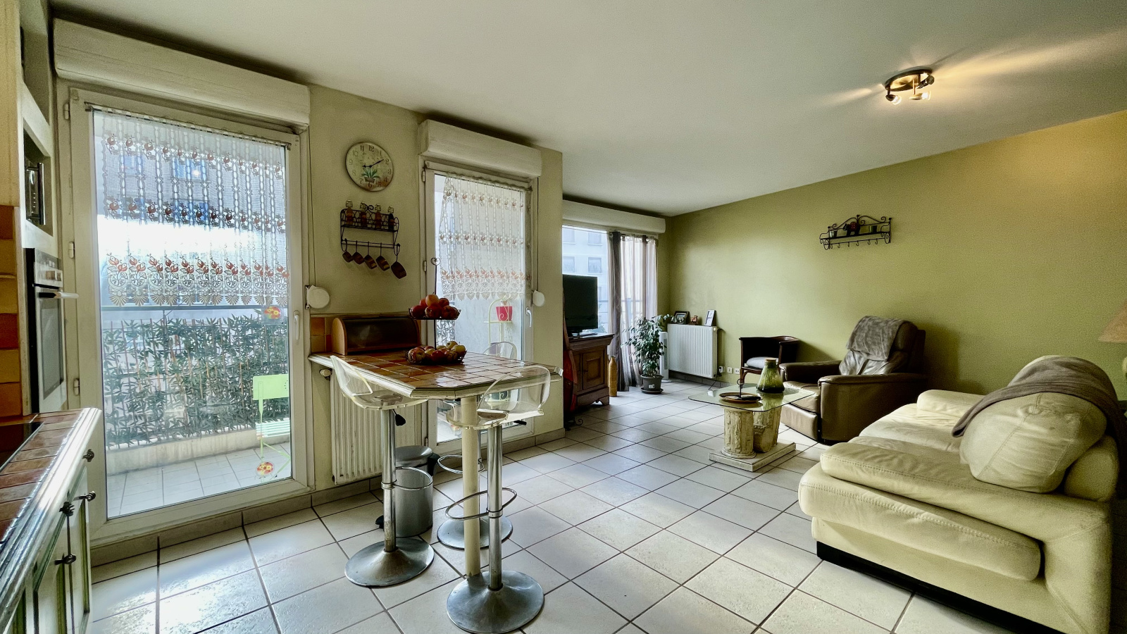 L’espace de vie se compose d’un grand séjour avec cuisine ouverte, entièrement aménagée, donnant accès à un balcon de 7 m² idéal pour vos moments de détente.