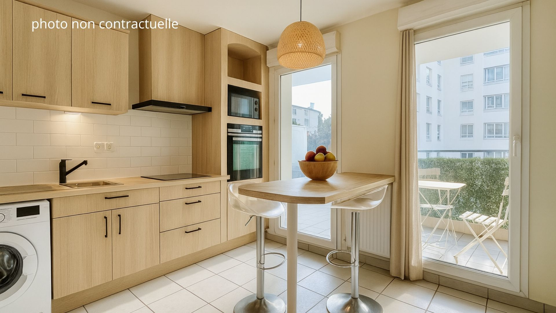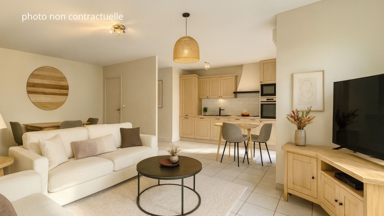 L’espace de vie se compose d’un grand séjour avec cuisine ouverte, entièrement aménagée, donnant accès à un balcon de 7 m² idéal pour vos moments de détente.
