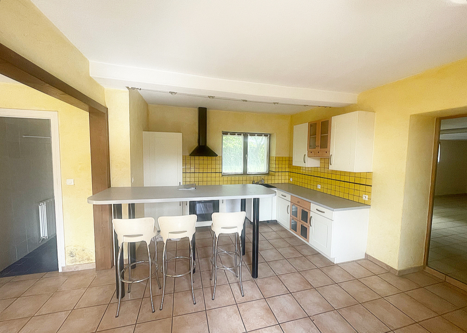 Vous entrez dans une belle et grande pièce de 40m²,à laquelle s'ajoute la cuisine ouverte, aménagée. Ensuite, vous découvrirez la pièce de vie avec ses placards de rangements, une première salle d'eau et un WC séparé.
