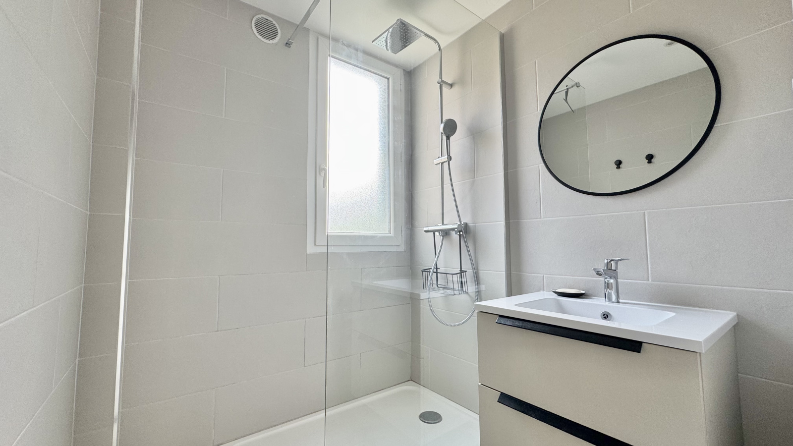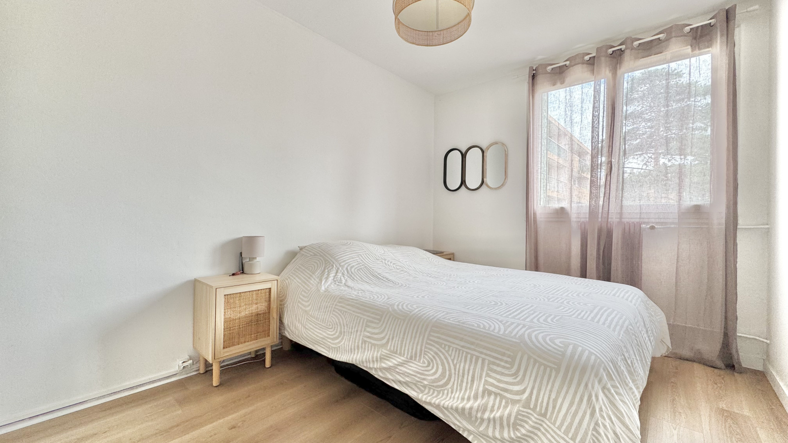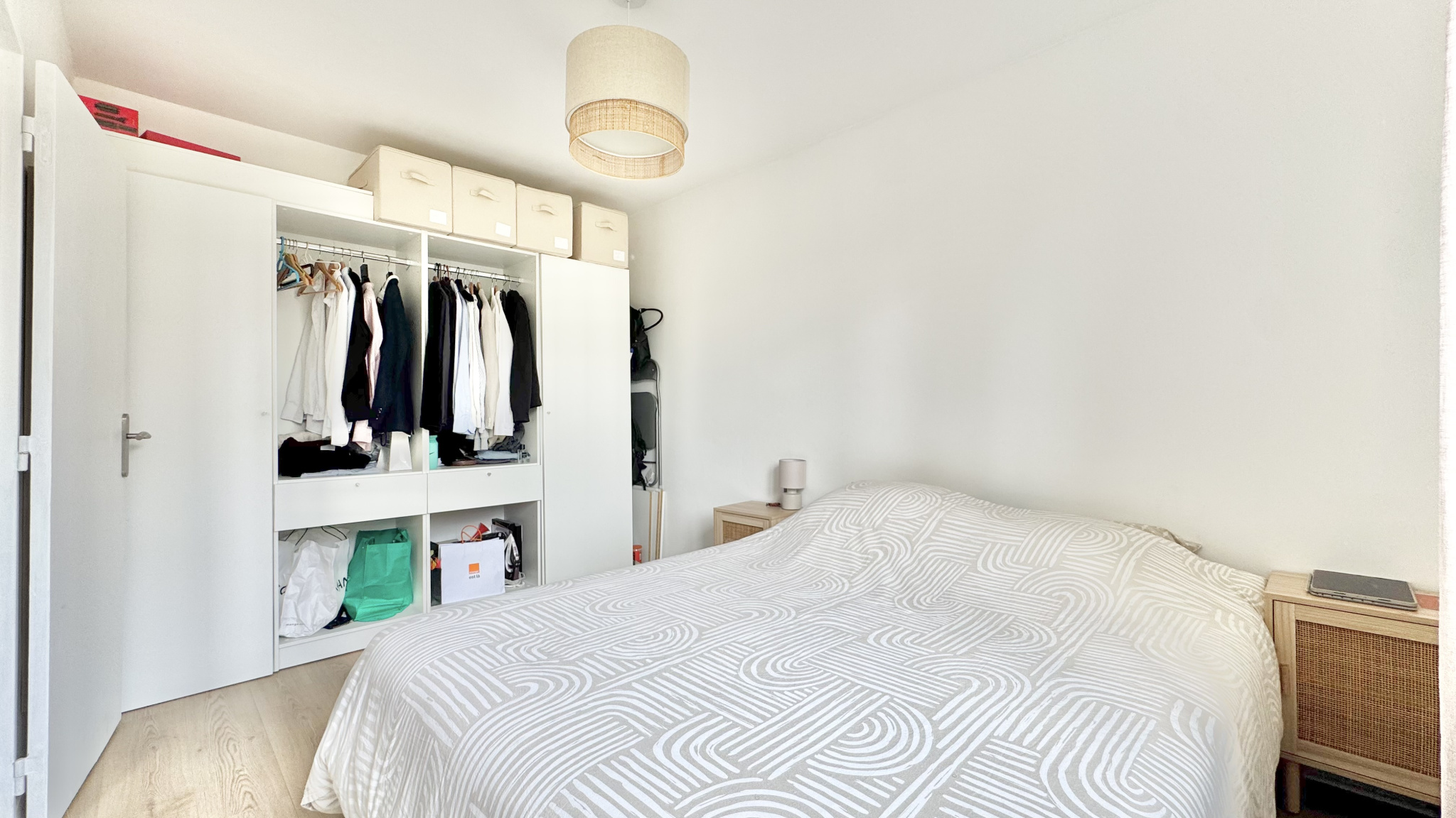 L’appartement dispose d’une grande chambre avec placard, d’une salle d’eau contemporaine et de toilettes séparées. La configuration actuelle permet aisément l’aménagement d’une seconde chambre en fonction de vos besoins ou projets.