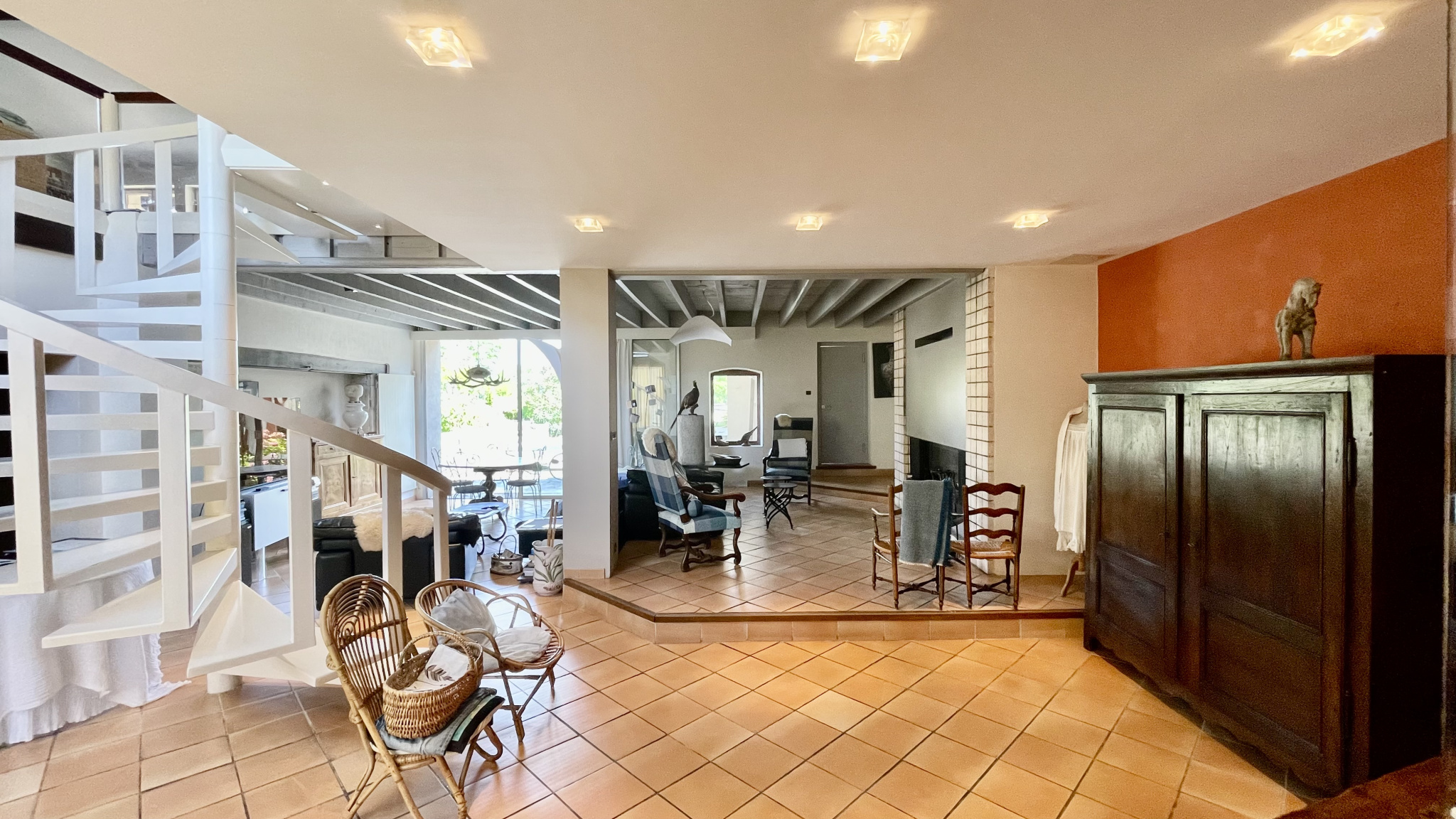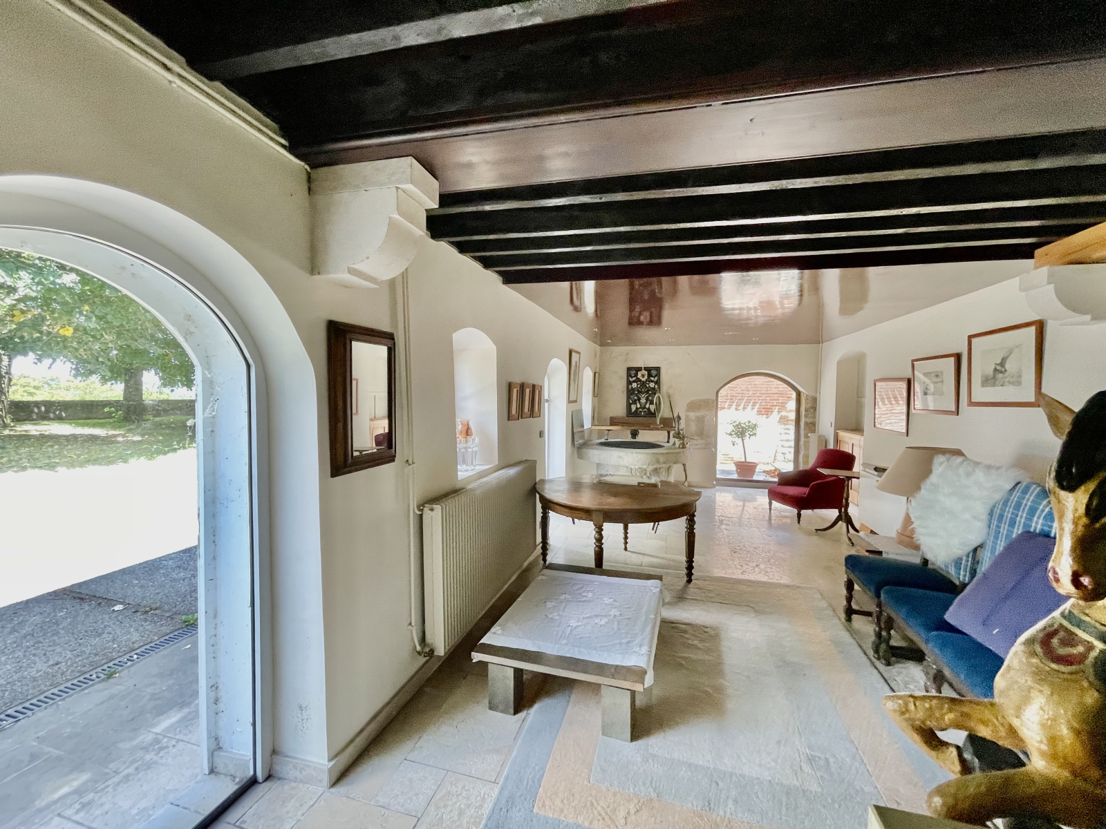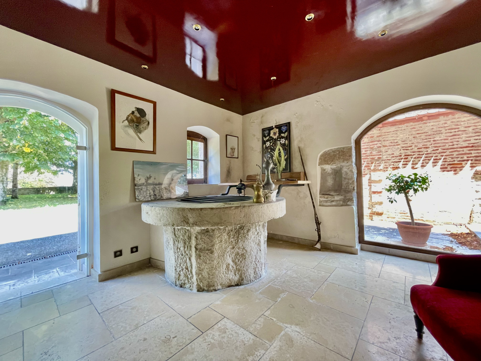 Une salle à manger ou salle de réception, sublimée par un véritable puits en pierre, constitue l’un des éléments les plus remarquables de la propriété et témoigne du caractère singulier du lieu.