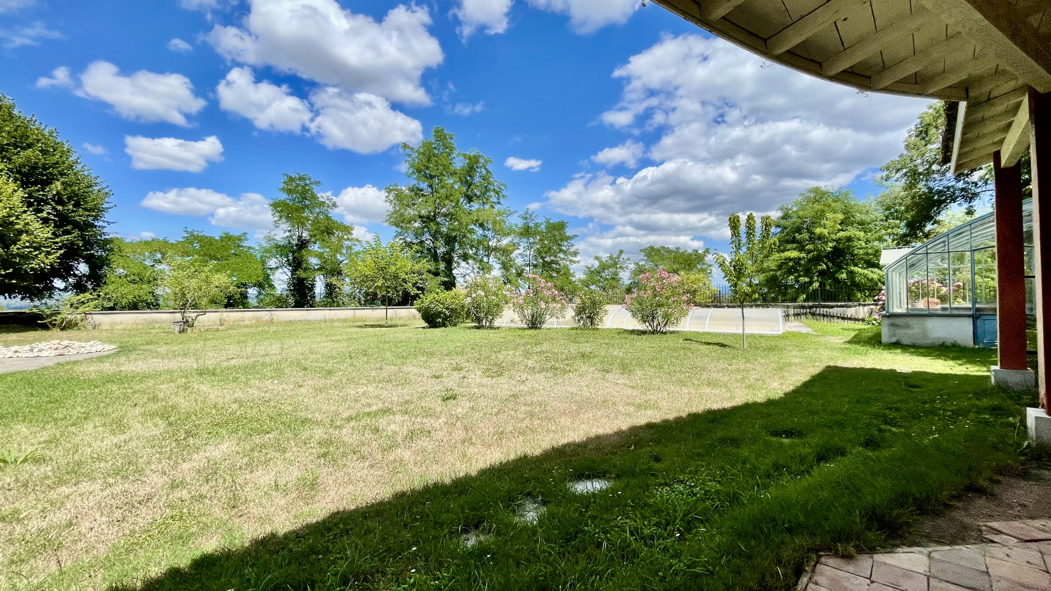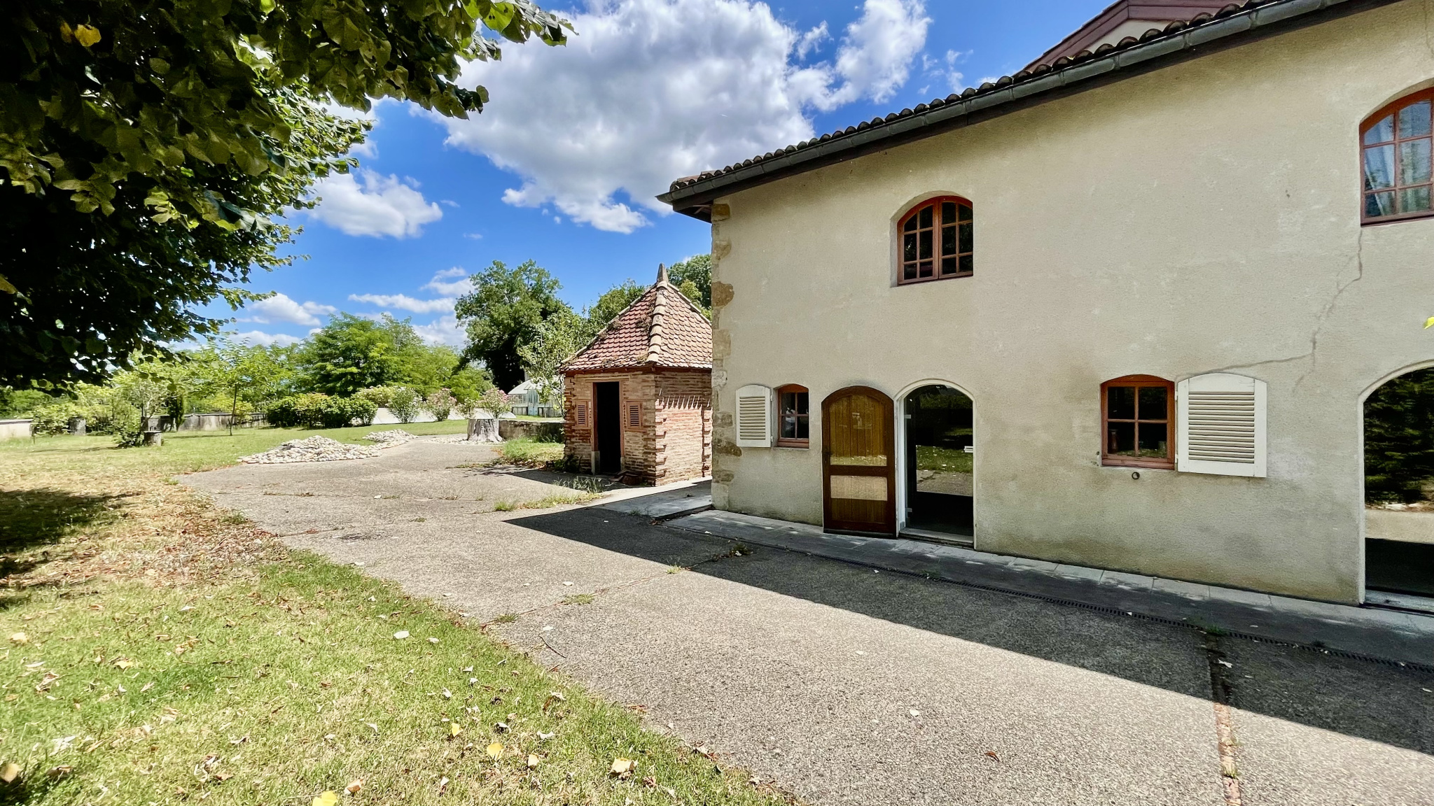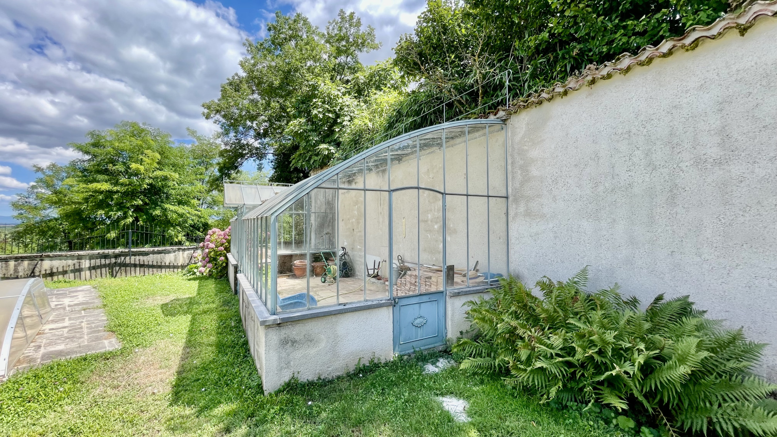 À l’extérieur, la propriété bénéficie d’un vaste jardin arboré de plus de 1 600 m², véritable havre de paix. Piscine fonctionnelle, serre, espaces ombragés, zones de détente et possibilité de stationnement pour plusieurs véhicules viennent parfaire cet environnement exceptionnel, idéal pour les amoureux de nature, d’authenticité et de grands espaces.