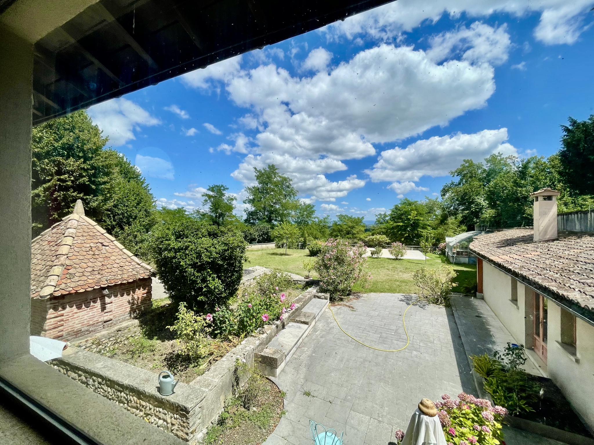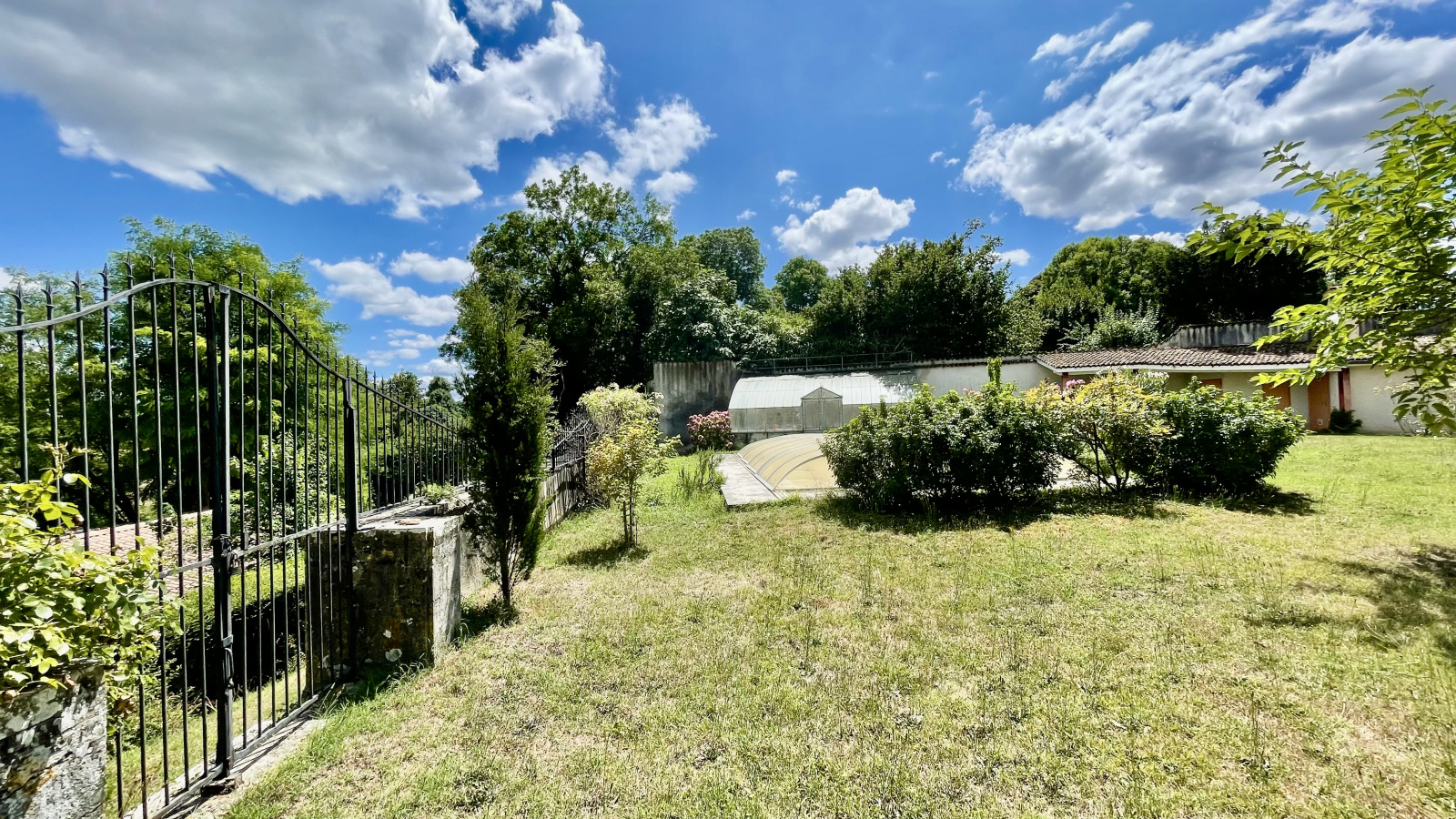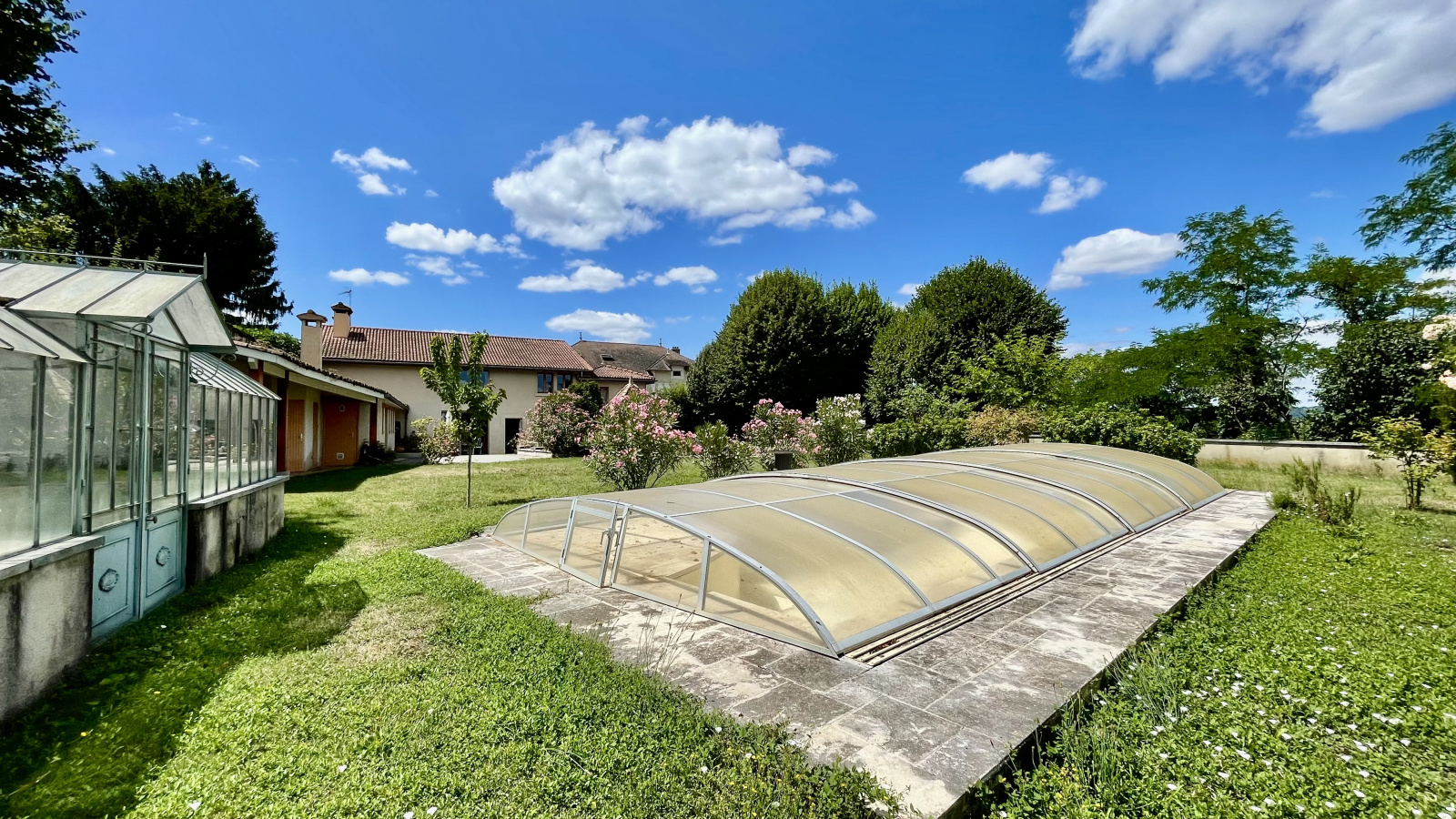 À l’extérieur, la propriété bénéficie d’un vaste jardin arboré de plus de 1 600 m², véritable havre de paix. Piscine fonctionnelle, serre, espaces ombragés, zones de détente et possibilité de stationnement pour plusieurs véhicules viennent parfaire cet environnement exceptionnel, idéal pour les amoureux de nature, d’authenticité et de grands espaces.