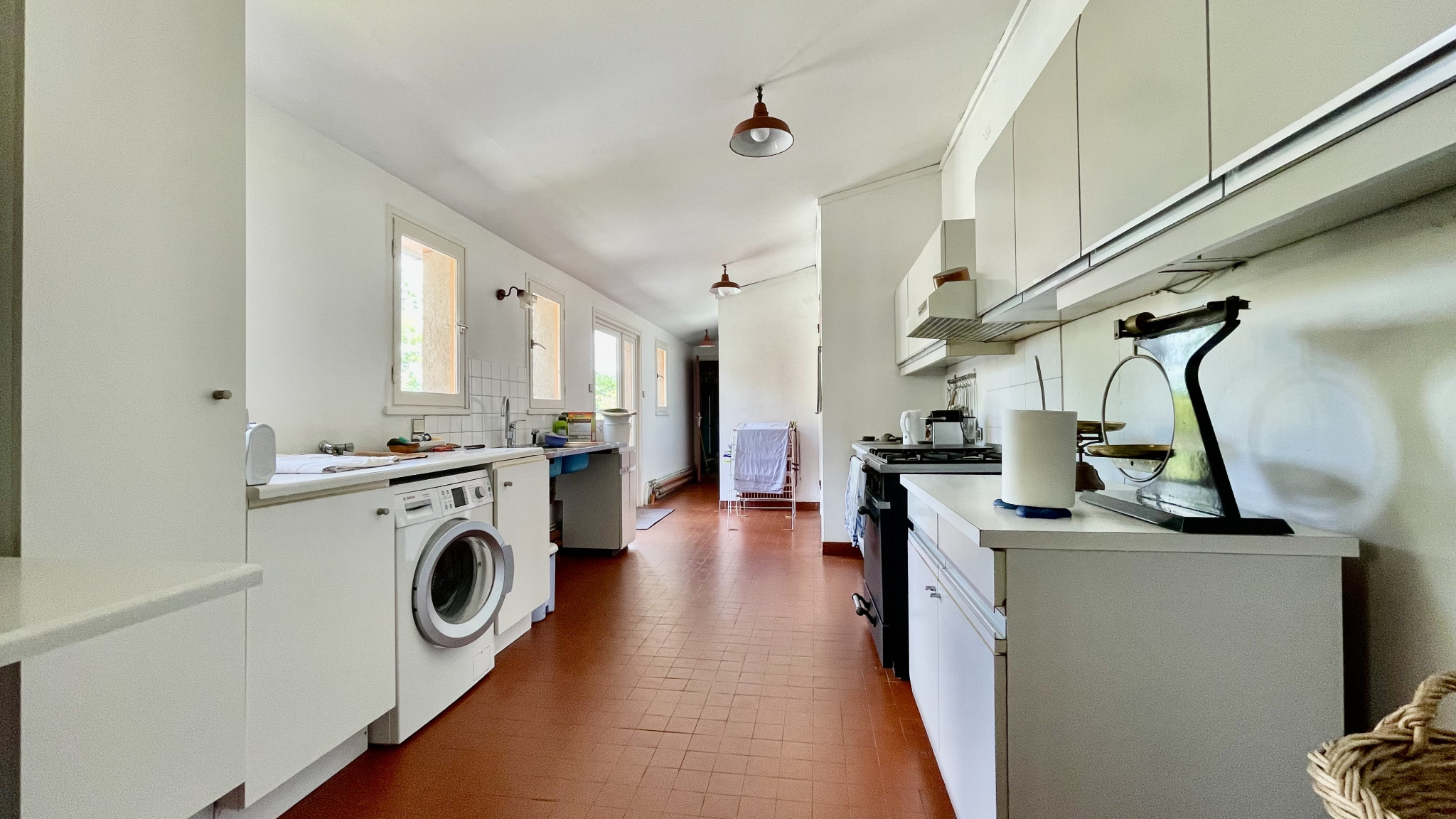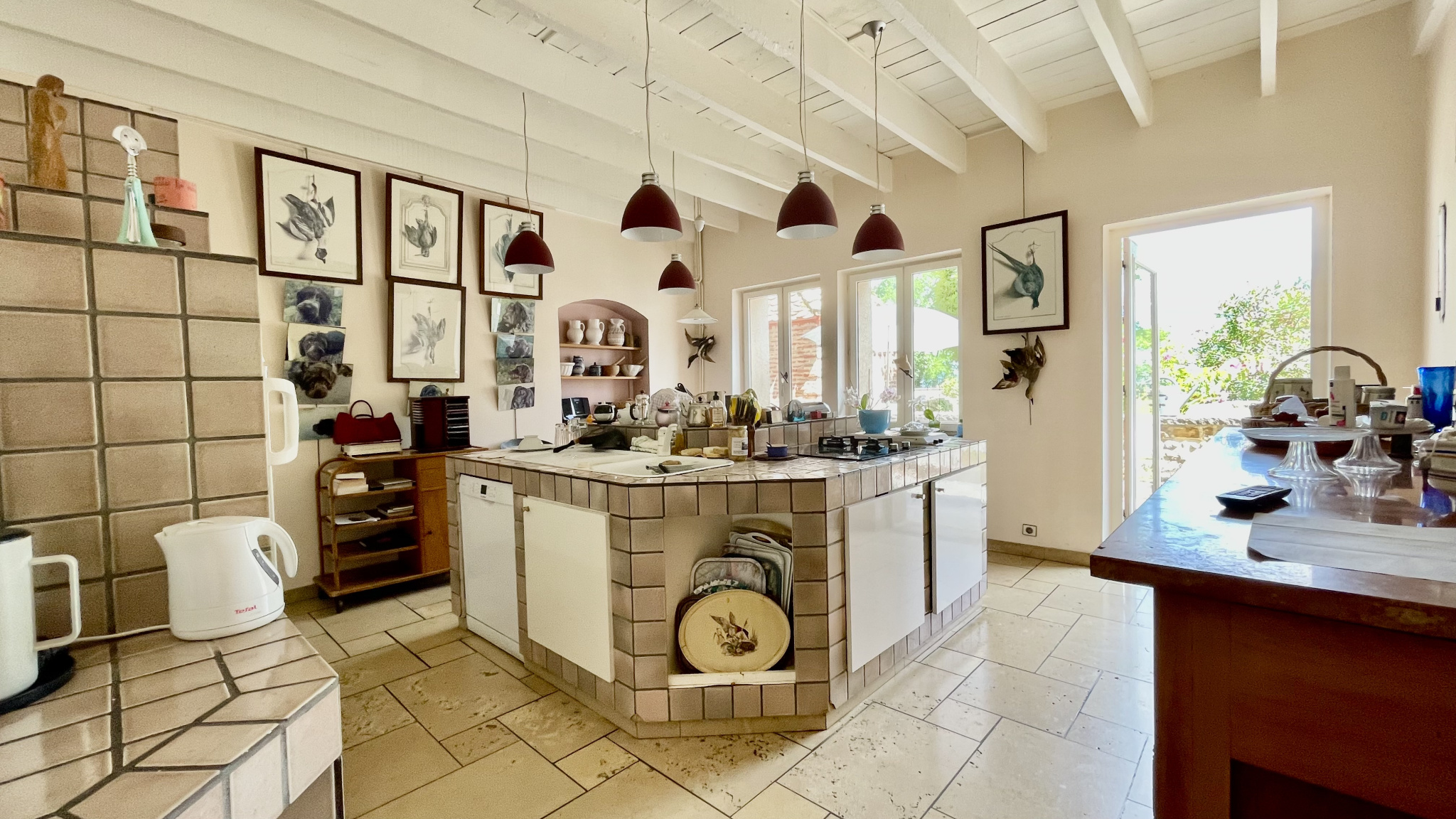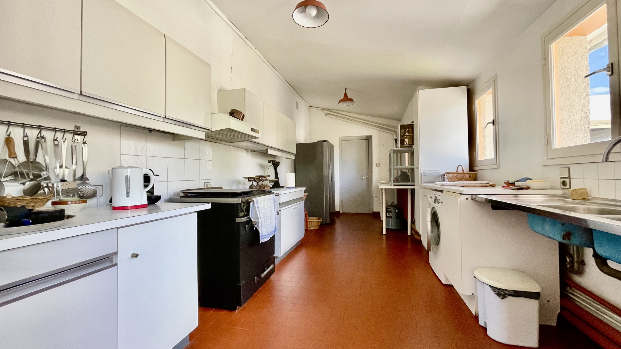 Une grande cuisine familiale, indépendante et ouverte sur le jardin, vient compléter les espaces de vie.
